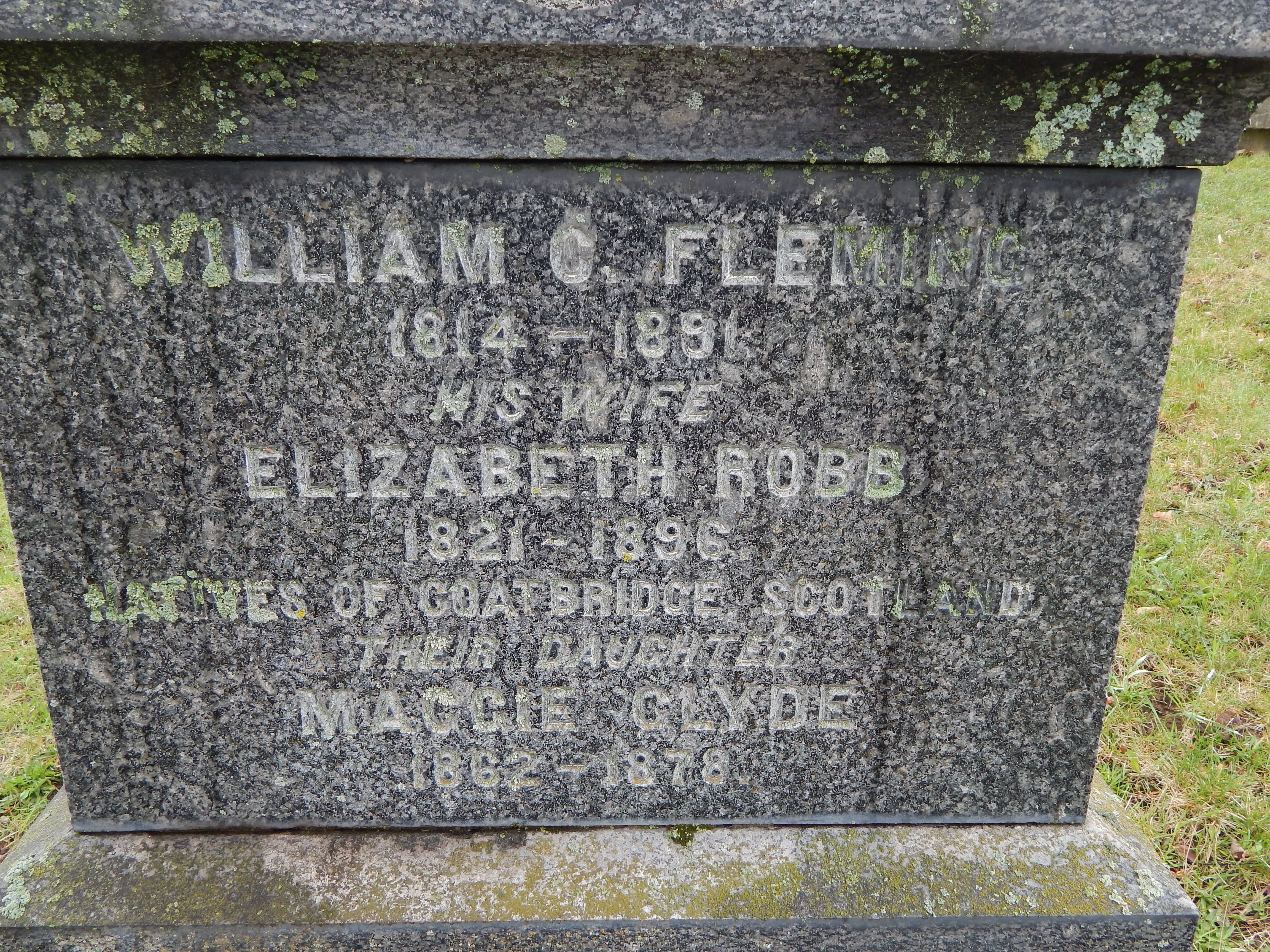 Name William C. FLEMING Birth 1814 Scotland, native of Coatbridge